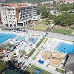 Situé à environ 4 km d'Aqua Fantasy Land, ce confortable Ramada Resort Kusadasi & Golf propose des chambres spacieuses à environ 25 minutes à pied de promenade du Port de plaisance de Kusadasi. Surplombant la Mer Égée, les clients de l'hotel 5 étoiles avec service complet peuvent profiter d'un hammam et d'un sauna et d'un bar piscine.